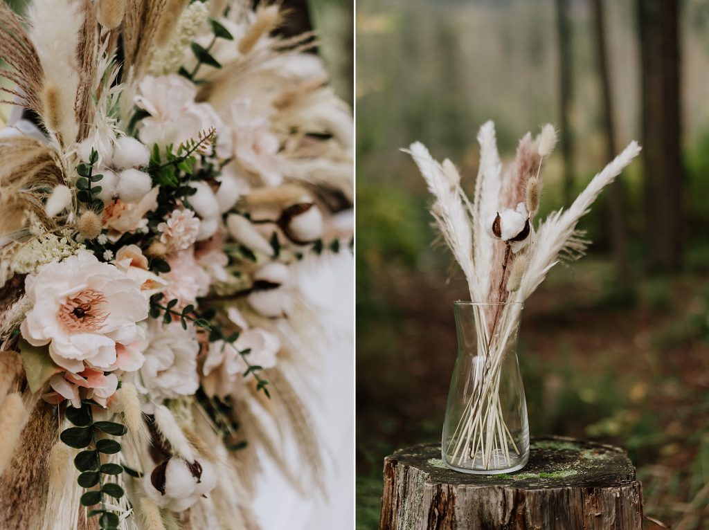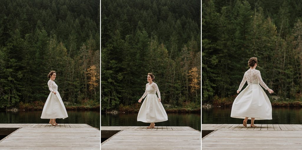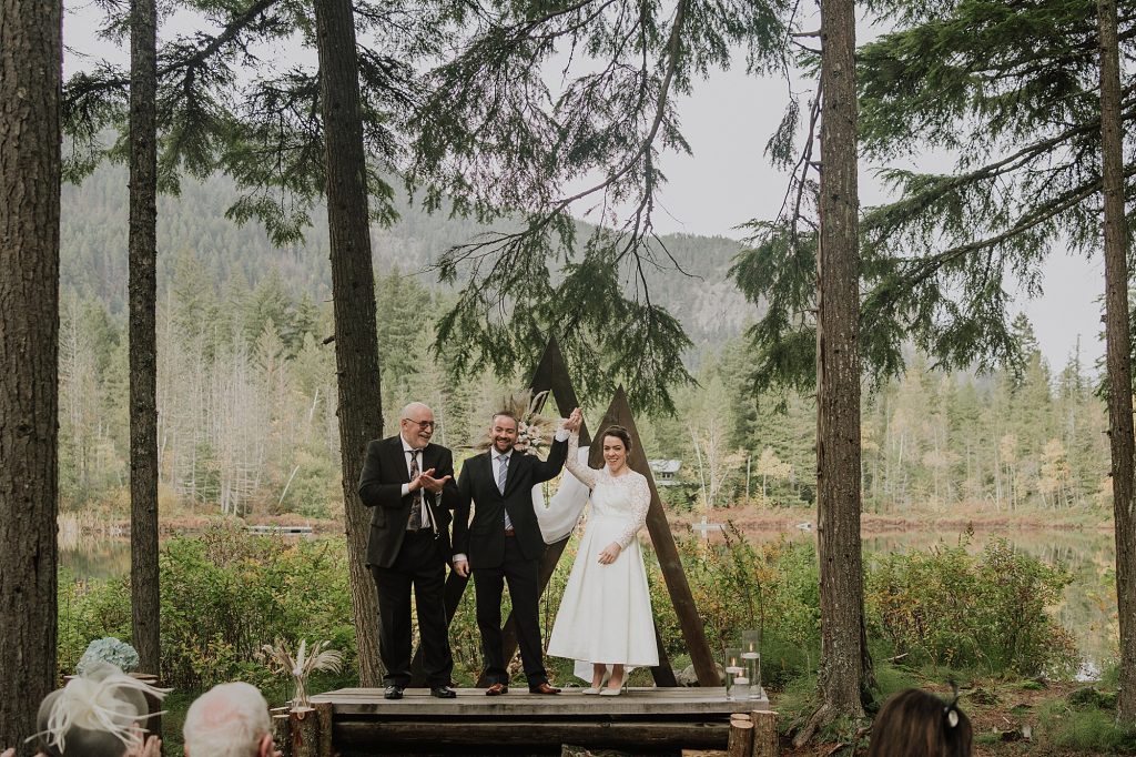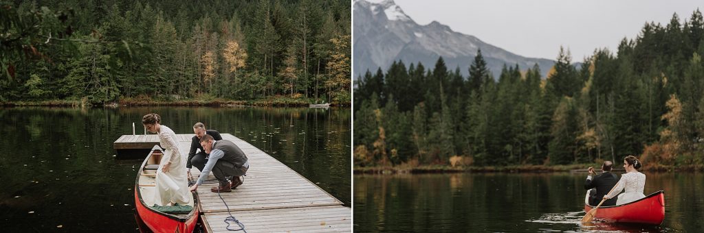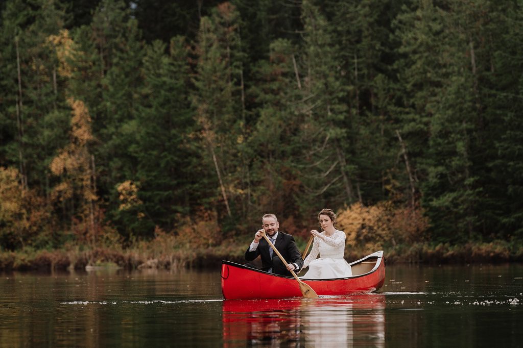 One of the highlights of the day was the portrait session. The couple took full advantage of Drumkeeran’s natural beauty, capturing timeless photos by the lake and even in a canoe with Mt. Currie rising majestically behind them. The soft light and serene water created a calm, romantic atmosphere that perfectly complemented the couple’s love story.