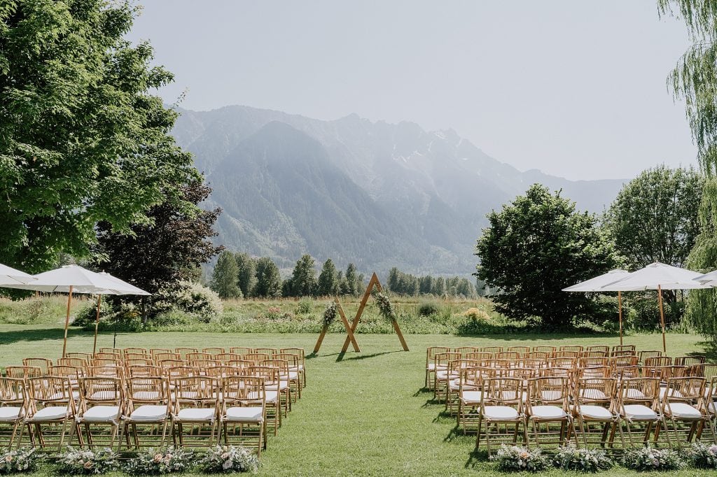 The Field: Settled into the base of a stunning mountain range, the field makes for an incredible ceremony spot. It’s also a favourite location for a long table dinner reception set-up. The views will add a majestic ambiance to your wedding ceremony + reception. The field’s views definitely add a wow factor to your mountain wedding in Pemberton.